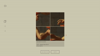 Ekphrasis is a 2D puzzle game where players can solve and examine a unique set of artifacts. Artifacts each have their own unique mechanics to solve them based on sound, color, sequencing, and more. Once solved, players can name and categorize them within the archive. Ekphrasis presents carefully crafted and unique puzzles, as well as challenging mysteries and opportunities to find hidden meaning through its branching story.